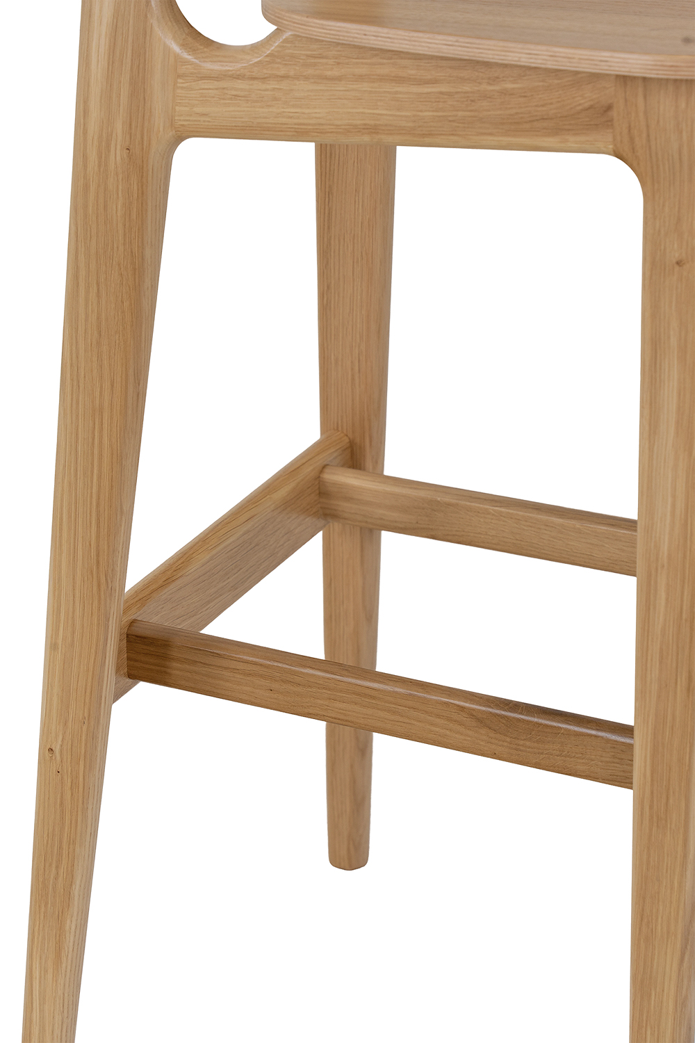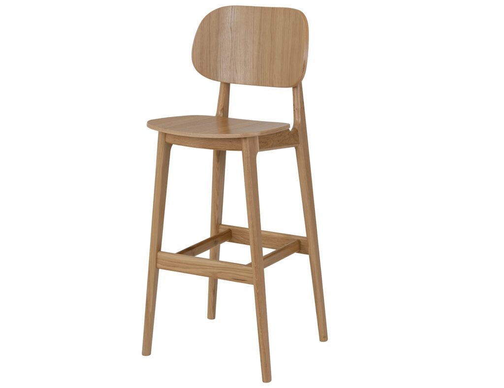 Proporcjonalnie wyprofilowane siedzisko oraz wygodne oparcie zapewniają komfort siedzenia przy wyspie kuchennej i blacie barowym, a podnóżek zwiększa ergonomię codziennego użytkowania.