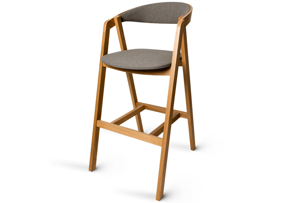 Hoker dębowy DM-KT386 tapicerowany został zaprojektowany do pracy przy wyspie kuchennej i blacie barowym i łączy minimalistyczną formę z funkcjonalnością wymaganą od wygodnego hokera.