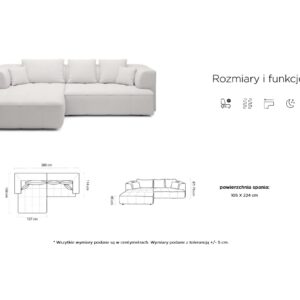 – powierzchnia spania 1-osobowa: 105 x 224 cm