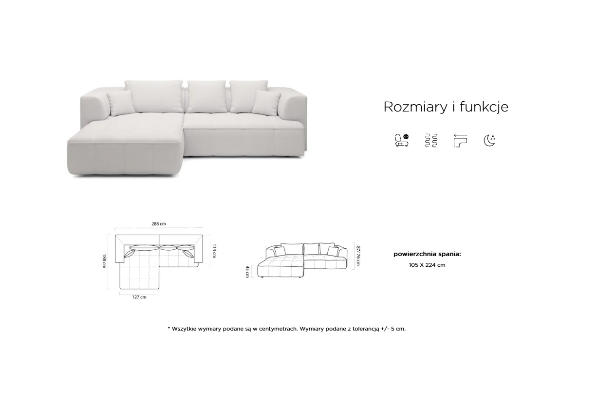 Wymiary narożnika podano z tolerancją wymiarów +/- 5 cm.