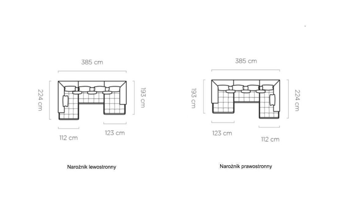 Wymiary narożnika podano z tolerancją wymiarów +/- 5 cm.