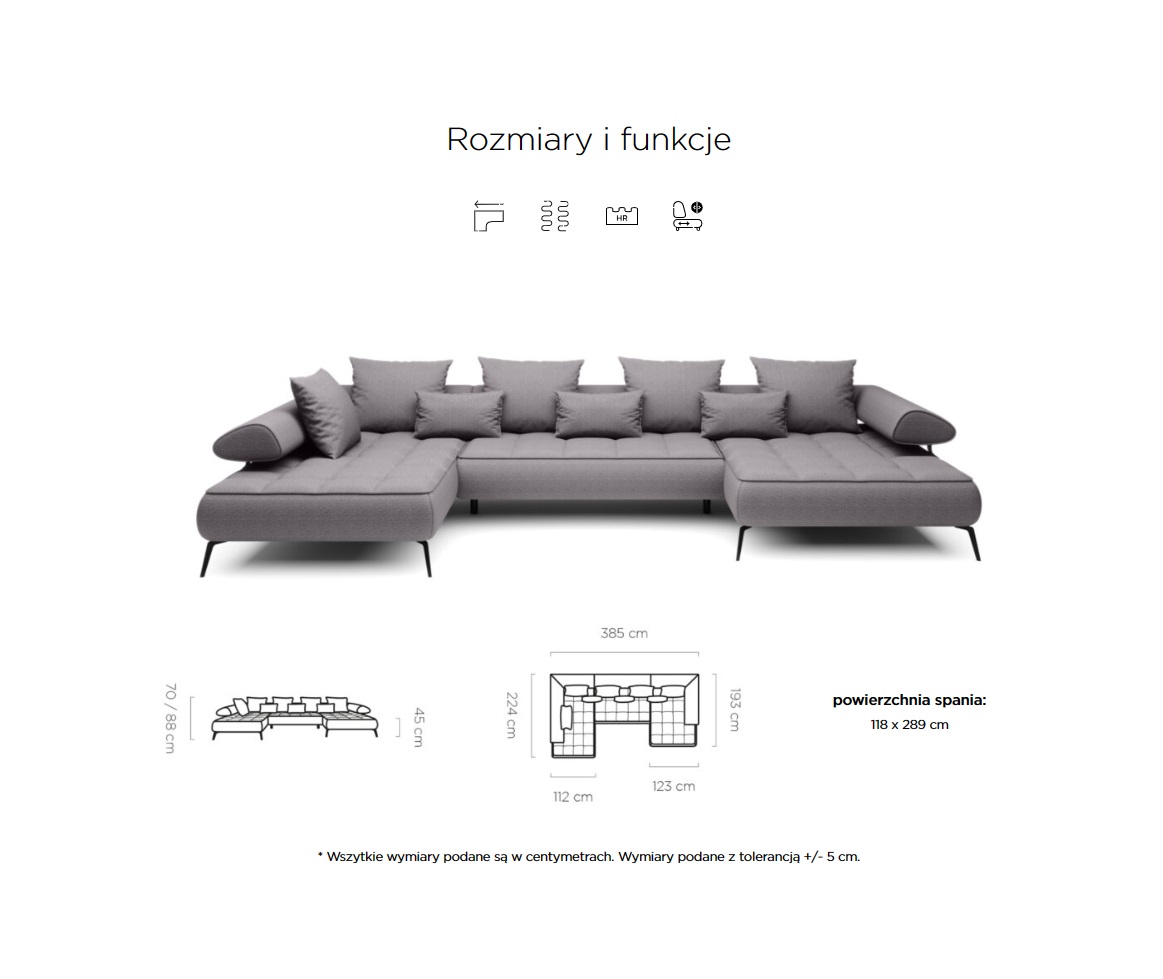 – funkcja spania 118 x 289 cm (uzyskiwana dzięki wysuwanemu siedzisku)