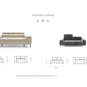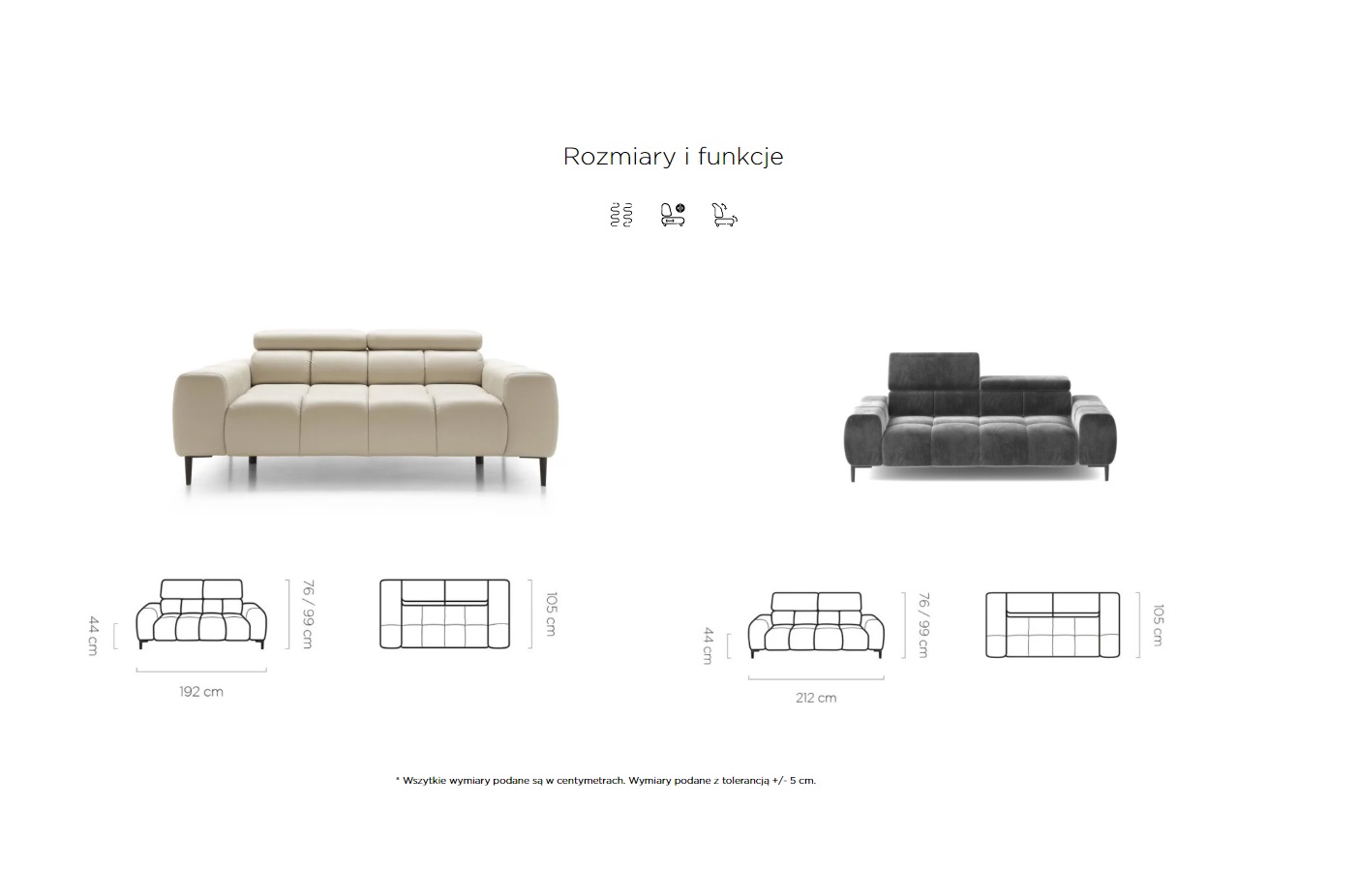 Sofa 2-osobowa ECLIPSE 192/105/76-99 cm zagłówki regulowane