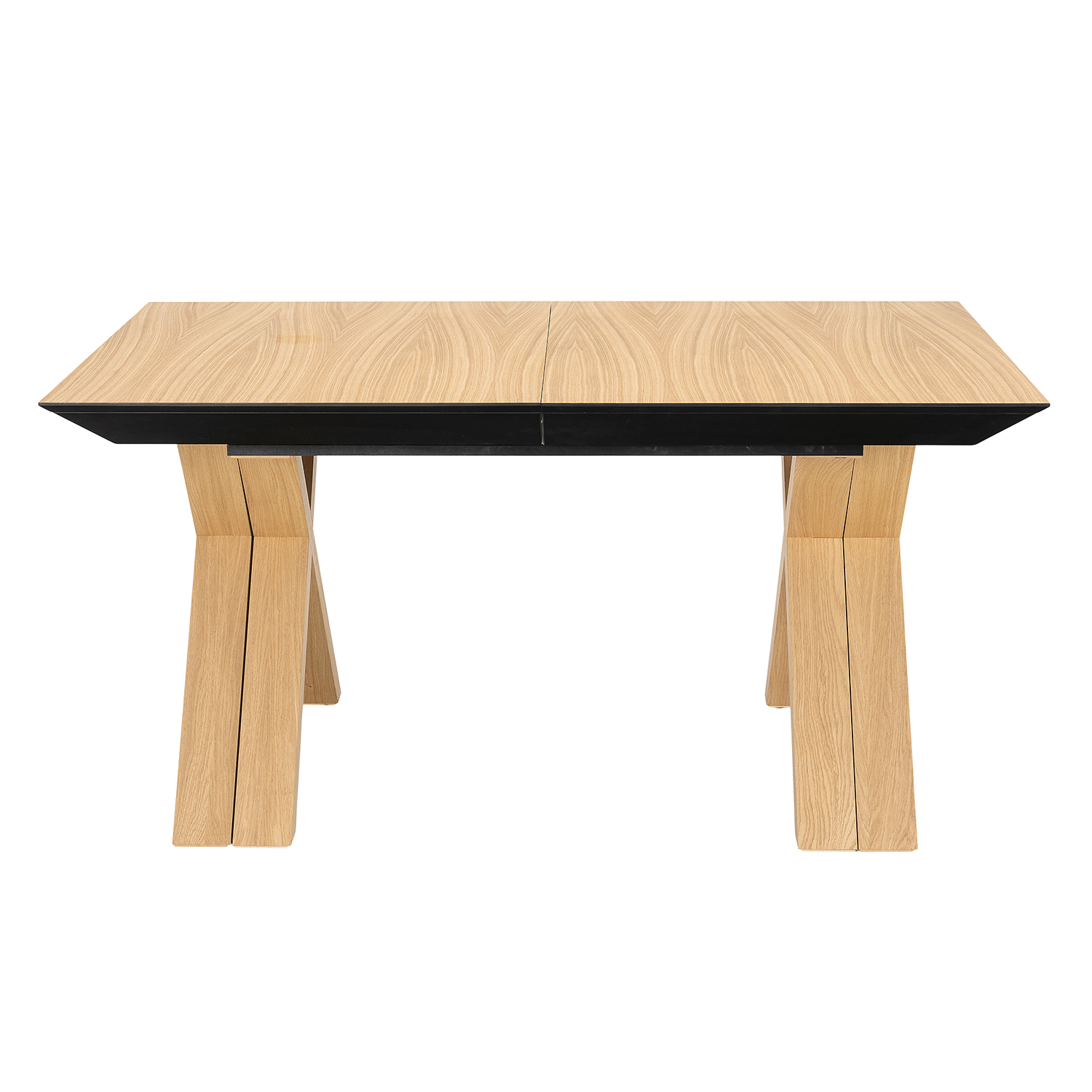 Blat stołu wykonany jest z płyty MDF z wysokiej jakości okleiną dębową, co zapewnia estetyczny wygląd, trwałość oraz komfort codziennego użytkowania.