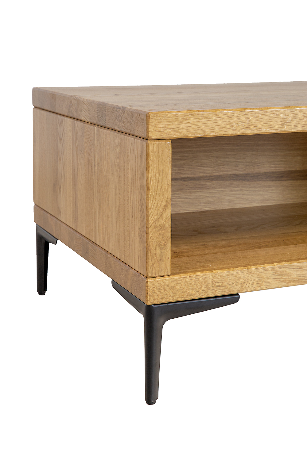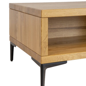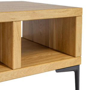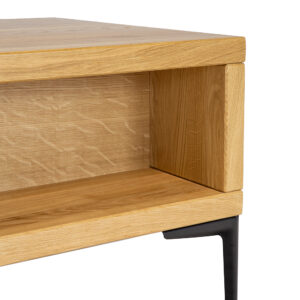 Pod blatem umieszczono praktyczną półkę, która doskonale sprawdzi się do przechowywania podręcznych przedmiotów, takich jak książki, czasopisma, piloty czy inne drobiazgi, które chcemy mieć pod ręką.