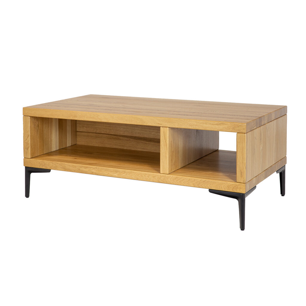 Nowoczesny stolik kawowy dostępny w dwóch gatunkach drewna: